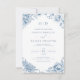 Convites Monograma de Casamento Azul Dusty, francês vitoria