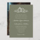 Mínimo de Casamentos Verdes Olivais Convite para Casamento Fotográfico com uma tipografia minimalista e moderna e anéis monogramas. Mostrado com um fundo de tons de terra terracotta, no entanto, outras cores estarão disponíveis. Você pode mudar facilmente a cor de fundo para qualquer cor para coordenar com sua paleta de cores de casamento. Sua foto favorita aparece no verso do convite.