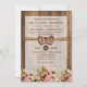 Convites Monograma de Corações de Madeira com Rosas Rosa e