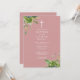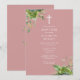 Convites Monograma de folhagem rosa poeirenta Batismo