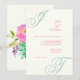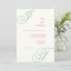 Design minimalista simples baseado no monograma inicial suave do noivo e da noiva. Cores de Pera Inglesa e Papoula da Primavera, um verde marinho claro e rosa quente, em um fundo marfim. As cores são completamente personalizáveis na ferramenta de design. Reverte para um buquê floral em aquarela suave nas cores de um jardim inglês na primavera.