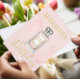 Uma abertura cor-de-água rosa é o fundo desta garrafa de perfume francesa clássica. O rótulo do frasco tem o número 40, mas pode ser alterado para qualquer idade. O nome numa cor dourada pode ser facilmente alterado para o seu próprio design pessoal.