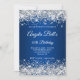 Um convite de aniversário de 40 anos elegante para ela. Personalize o texto para outra celebração de aniversário de marco. O recurso de arte digital faux sparkly prata, cinzas e brilho branco com brilhos extras contra uma imagem azul escura. O monograma clássico de caligrafia branca com letra de solteiro pode ser personalizado. Todos os elementos brilhantes nesta design de menina moderna são gráficos digitais.