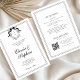Este Monograma do Arco Francês Crest Tudo em Um Convite de Casamento exude elegância com sua crista vitoriana e seu monograma do arco de coquetes preto-quico francês, desenhado por uma fronteira dupla na moda. Ideal para uma celebração formal, inclui informações personalizadas de alojamento e recepção, além de um conveniente código QR nas costas para RSVP on-line. Uma mistura perfeita de tradição e modernidade!