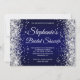 Crie seu próprio chá de panela de na moda de monograma rico para ela. Gráficos reluzentes de cinzas prateadas cintilantes e decorativos nas bordas. O plano de fundo apresenta um gradiente azul-marinho escuro ombre. Personalize as cores ou estilos da fonte do convite e do monograma. Os faíscas, brilho e folha de luxo serão criados por elementos artísticos que impressão gostam de uma foto.