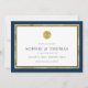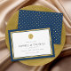 Este clássico moderno salve o cartão de data apresenta uma borda falsa de folha de ouro e círculo na frente e bolinhas de folha de ouro falso no verso. Esta placa também tem uma cor de fundo editável; para alterá-la de azul para a cor de sua preferência, clique no botão personalizar e altere a cor de fundo frontal e traseira. Veja outros itens de casamento correspondentes aqui https://www.zazzle.com/collections/editable_color_gold_round_monogram_wedding_3-119510628617321222?rf=238364477188679314&tc=rc. Personalize-o substituindo o texto do marcador de posição. Para obter mais opções, como alterar a fonte, seu tamanho e espaçamento entre letras, clique no botão "Personalizar". *Observe que a Marca d'água do Zazzle que aparece na visualização de zoom NÃO aparecerá no produto impresso final. © Rosewood e Citrus