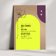 Arcos diagonais de cor amarela neon e de ameixa sobre estoque de papelão inspiraram fundo com flores de arte de linha e texto em preto. Monograma no canto superior direito.
