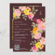 Celebre seu casamento com nosso charmoso código Qr de Casamento Floral e foto Convite. Este convite maravilhosamente desenhado apresenta um encantador conjunto de flores pintadas à mão em tons vibrantes de rosa, laranja e amarelo, acentuadas pela luxuosa folhagem verde. A elegante fronteira floral enquadra perfeitamente o texto, criando um aspecto harmonioso e romântico. Um monograma moderno no canto superior adiciona um toque pessoal, e um código de QR moderno no canto inferior direito garante opções de RSVP convenientes em um fundo de mogno marrom-rústico escuro editável. Além disso, há um modelo de foto personalizável no verso, permitindo que você adicione uma foto carinhosa do casal, fazer este convite não só bonito, mas também pessoal e memorável.
