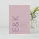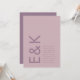 Essa fantástica e limpa, bem projetada, e moderna e mínima, mas muito divertida colocação de monograma e texto em Dusty Rosa Purple e White para um estilo minimalista, no entanto é personalizável para outras cores e faz parte de um conjunto único e de uma coleção de Phrosne Ras Design. Isso seria excelente para aqueles que planejavam um evento divertido preto e branco, com este convite de casamento sendo ousado e inspirado por pessoas divertidas que amam uma boa festa e não se importam de se desviar da tradição.