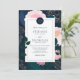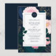 Monograma II de Folha de Ouro de Peões Rosa Modernos Convite Caseiro | Convite de casamento personalizável, com flores cor-de-rosa, folhagem azul e verde e acentos de folha de ouro falsos. Este convite floral é perfeito para primavera e casamentos no inverno. Itens correspondentes estão disponíveis.
