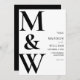 Simples Convocação de Casamento Preto e Branco. Apresenta tipografia de monograma ousada e design gráfica mínima. Personalize o texto com todos os detalhes do seu dia especial.