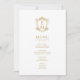 Os menus de casamento são essenciais para o seu evento especial. Este design de casamento apresenta uma crista floral de ouro vintage com iniciais personalizadas.