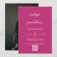 Um simples e moderno convite de casamento tradicional para na moda com um roteiro elegante de caligrafia e um código QR para fácil rsvp e detalhes para o seu casamento. No fundo, há uma foto de cheio que você pode facilmente mudar com um monograma para suas iniciais e data de casamento.
