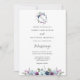 Aprecie seus hóspedes com este elegante convite de casamento monograma com detalhes florais requintados de cor d'água em tons azuis e roxos e elementos caligráficos modernos manuscritos. Capacidade de mudar da introdução "juntamente com os seus pais" para "juntamente com as suas famílias", "juntamente com a alegria do excelente" ou "juntamente com o prazer do excelente". Belo monograma floral no topo com iniciais de casal e no fundo uma borda floral definindo seus detalhes de convite. Volte em branco, que pode ser alterado para qualquer outra cor desejada selecionando o botão "Editar usando a ferramenta Design" localizado no final das caixas de texto modelo. Parte da nossa coleção "Blossomas Roxos e Azuis" com uma variedade de produtos de coordenação disponíveis. Visite a coleção inteira em: https://www.zazzle.com/collections/purple_and_blue_blossoms_collection-119752419948427787