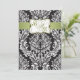 Convite monogrammed do casamento do damasco preto e branco. Fácil personalizar - mude a pia batismal, cor, tamanho e pnha seu próprio texto.
