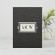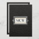 Veja o aspecto do couro preto e uma estrutura de metal prateado com um presente personalizado de monograma, com um gráfico corporativo de executivo impresso.