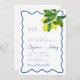 Convites Monograms Lemon Citrus, Blue Wave Border Wedding
