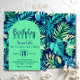 Convites Monstera Tropical Folha Pastel Verde e Azul