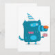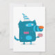 Defina o tom para uma celebração divertida com esses convites apresentando um monstro de desenho animado azul divertido vestindo um chapéu de festa listrado e segurando um presente. Perfeito para aniversários de crianças, festas temáticas ou eventos excêntricos, esses convites coloridos tornam sua ocasião especial destacar-se. Um design alegre que deixa os convidados animados desde o início.