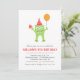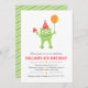 O convite de aniversário do divertimento apropriado para meninos e meninas parties caracterizando um monstro pequeno engraçado do partido que guardara um cupcake e um balão. Ilustração bonito e um tanto lunática dos desenhos animados. Na parte traseira é um teste padrão de listras verdes, diagonais. Outros produtos de coordenação estão igualmente disponíveis. Para pedidos ou a ajuda feita sob encomenda com personalização use por favor a relação do contato da loja.