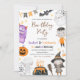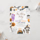 Prepare-se para uma celebração espetacular com este Convite Duplo de Aniversário do Halloween de Monstros! Esta design divertida e festiva mostra monstros brincalhões, crianças vestidas com adoráveis fantasias de Halloween, uma abóbora, caldeirão borbulhante, e um fantasma amigável. Este convite dá o tom para uma festa cheia de diversão com uma mistura de assustador e fofo. BRT171