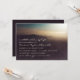 Um memorial ou um convite para comemoração da vida, com uma fotografia da ascensão solar sobre as montanhas, impressa com um olhar antigo.