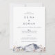 Esta simples montanha floral, tudo num convite de casamento, é perfeita para um casamento ao ar livre. O moderno design minimalista apresenta uma montanha azul de aquarela marinho com flores silvestres de queda cor rosa-pincelada. Salve o papel, incluindo os detalhes na parte traseira do convite de casamento, em vez de em um cartão de cercado separado. Inclua as informações de RSVP também se seu convidado estiver respondendo eletronicamente (opcional).