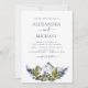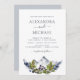 Montanha rustica ao ar livre Berries e Greenery Watercolor Spring Wedding Dusty Blue e Green Elegant and Modern Invices on White - inclui uma bela e elegante tipografia com folhas botânicas modernas e verde para a celebração especial do dia do casamento.