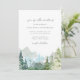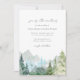 Este elegante convite de casamento apresenta uma floresta a cores-d'água e uma paisagem de montanha, detalhes minimalistas e texto caligráfico. A parte traseira tem detalhes adicionais e placas de gabinete de fazer de código QR opcionais. É clássico, mas moderno, e certamente trará a cena para o seu casamento de destino de montanha.