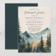 Este convite para jantar de ensaio apresenta uma bela ilustração de montanhas e pinheiros em tons de azul e verde, reminiscente de uma paisagem montanhosa serena. A ilustração é colocada sobre um fundo cremoso que lhe dá um toque quente e convidativo.