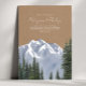 Ilustração inspirada por aquarelas de montanhas com capa de neve e árvores verdes. O fundo é inspirado no estoque de papelão.