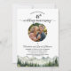 Um convite elegante de aniversário de casamento com montanhas de aquarelas e pinheiros e uma foto especial que você pode personalizar com seus detalhes.