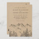 Celebrar seu tema ao ar livre com este convite de casamento. Apresentando montanhas desenhadas à mão e pinheiros paisagísticos sobre um fundo de papel Kraft. Seus detalhes de casamento aparecem em uma tipografia ousada de serifa. Perfeito para as celebrações do tema do país ou da natureza. Você pode usar este design para uma queda assim como um casamento no inverno.