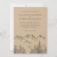 Celebre o teu tema ao ar livre com este convite de casamento. Apresentando montanhas desenhadas à mão e pinheiros paisagísticos sobre um fundo de papel Kraft. Seus detalhes de casamento aparecem em uma tipografia ousada. Perfeito para as celebrações do tema do país ou da natureza. Você pode usar este design para uma queda assim como um casamento no inverno.