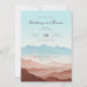 Este convite de casamento apresenta um design sereno e elegante com um fundo em estilo aquarela que retrata montanhas em camadas em tons pastéis suaves de azul, rosa e marrom. O layout minimalista, porém sofisticado, usa gradientes sutis e transições suaves para criar uma atmosfera calmante, reforçada por amplo espaço negativo para facilitar a leitura. A caligrafia cursiva elegante destaca os nomes, enquanto as fontes serifadas limpas fornecem detalhes adicionais, tornando-o esteticamente agradável e informativo. Perfeito para casais que buscam uma atmosfera tranquila e calorosa, este convite define o tom para uma celebração memorável.