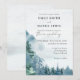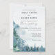 Montanhas de aquarela de Tema Partidas montanhas rusticadas de casamento design apresenta árvores de aquarela e montanhas em um fundo de aquarela azul empoeirado. A tipografia emparelha as letras tradicionais com o texto moderno escrito à mão. #WeddingConvites #DustyBlueWedding #WeddingConvites