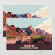 O deserto vermelho e as montanhas estão expostos no cartão do Parque Nacional Zion em Utah. Este cartão de lado duplo pode ser usado como um sinal de "número" de mesa para um casamento.