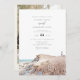 Este convite para o casamento apresenta uma pintura aquosa das praias em Montauk, Nova Iorque. Edite com facilidade o texto *maioria* para atender às suas necessidades de eventos. Altere a cor de fundo e adicione a sua própria fotografia à parte de trás, se quiser.