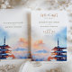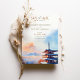 Convide seus convidados para um casamento de destino exclusivo com este convite "Salvar a Data" com uma ilustração impressionante de aquarela do Monte Fuji e da icônica Chureito Pagoda. Com tons suaves de laranja, rosa e azul, este design captura a beleza serena da paisagem do Japão, evocando um senso de romance e elegância cultural. Perfeito para um casamento no Japão, este convite mostra a vista pacífica e inspiradora do Monte Fuji no nascer do sol ou pôr do sol. Ideal para casais que amam viagem e natureza, este cartão define um tom sofisticado para sua celebração inesquecível.