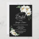 Convide seus amigos e entes queridos para o seu chá de panela com este convite preto com convite de margaridas brancas.
