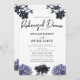 A bold and sophisticated Rehearsal Dinner Invitation featuring dramatic dusty blue and grey floral illustrations against a stark black background. The crisp white typography and classic layout set an elegant, moody tone. Perfect for a formal evening or a sophisticated wedding.