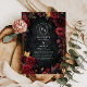 Um dramático e elegante design de casamento, com dahlias burguesas profundas, folhas ouros e folhagem rica do outono contra um pano de fundo preto texturizado. Perfeito para casais que procuram uma atmosfera moderada, romântica e luxuosa para a sua queda ou celebração do casamento no inverno