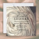 Um chá de panela lindamente feminino em branco escura e melodia florescendo sobre um fundo preto, este design tem um charme alarmante e um modelo de texto fácil de usar para preencher os detalhes de seu evento especial.