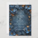 An enchanting deep-navy wedding design wrapped in glowing copper florals and delicate botanical detailing. This immersive, moody palette creates a romantic twilight atmosphere, perfect for elegant evening weddings or couples who love rich, dramatic aesthetics. The ornate frame draws the eye to your names and details, giving the entire piece a luxurious, storybook feel. A sophisticated choice for modern romantics who want their celebration to feel timeless and striking.