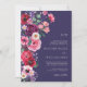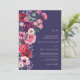 Convite De Casamento De Monogramas Florais Moody. O romance delicado encontra elegância eterno neste maravilhoso convite para o casamento, apresentando um buquê lateral pintado à mão de rosas exuberantes, anêmonas, cosmos, margaridas e delfinio em tons de cor-de-rosa, vermelhos profundos, burgundy, blues e roxo, acentuados com verde-esmeralda e eucalipto. O fundo cor-de-rosa suave melhora a rica tonalidade floral, criando um design sofisticado e encantador. Um padrão de coordenação no verso adiciona um toque refinado, fazer este convite atordoante de todos os ângulos. Personalize facilmente a redação, os estilos de fontes e os tamanhos para corresponder à estética do seu casamento, e misture e combine planos de fundo para criar uma aparência que complementa perfeitamente a sua celebração. Faça uma impressão duradoura com um convite que captura a beleza e o romance do seu dia especial. NOTA: o texto é Marinho Azul para corresponder à coleção, mas pode ser facilmente alterado para se adequar ao seu estilo.