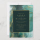 Seus sonhos estão finalmente se tornando realidade e este design abstrato de tinta alcoólica que flui define o tom perfeito para o maravilhoso casamento que você sempre imaginou. Em tons de verde-vidro marinho a esmeralda escura. acentuado com ouro brilhante, o convite de casamento mostrado aqui fornece uma modelo para adicionar facilmente seus próprios nomes, data de casamento e detalhes do evento. Procure ID988 para ver outras peças neste conjunto de casamento coordenado.