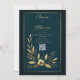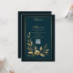 Set a tone of high-end drama and timeless romance with this striking botanical design. A central, shimmering gilded flower is surrounded by intricate metallic-effect leaves and delicate sprigs, creating a luxurious focal point. These golden elements pop vividly against a velvety midnight navy background that features subtle, dark teal undertones for added depth. The composition is framed by a sleek, minimalist gold border that bridges the gap between classic elegance and modern style. This aesthetic perfectly suits a variety of upscale events, from a starlit celestial ceremony to a moody autumnal wedding or a sophisticated black-tie evening gala. The contrast of the rich dark paper look with the bright gold botanical art ensures this invitation makes a bold, unforgettable statement. This invitation is ideal for formal weddings, evening garden receptions, celestial-themed events, or any celebration requiring a touch of "dark academia" or "gilded luxury" style.