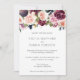 Moody floral convidado com uma borda superior com figos, bagas e rosas pintados com cor d'água em ameixa e rosa. A parte de trás é uma cor de ameixa profunda e pode ser alterada para qualquer cor desejada. Os tons profundos de roxo fazem este excelente de convite para um casamento no outono.
