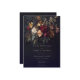 This stunning dark gothic wedding invitation features a luxurious moody and slightly withered floral arrangement in deep jewel tones over a black background. The back contains the information your guests need to rsvp online or any other information provided by your wedding Website. Perfect for a mysterious and romantic fall or winter ceremony. This dramatic design is ideal for couples seeking a non-traditional, opulent or vintage style. Created by Simply Farmhouse Press.