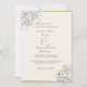 Flores de tinta desenhada à mão numa cor de fundo de marfim. Tocado com borda falsa dourada e elementos de suporte. Um convite de casamento marrom e dourado na posição vertical de design. Este é um design de convite elegante e moderno para personalizar com seus nomes e detalhes de casamento. Centrado no destaque de um mural de arte-line em ouro e branco, com delicados buquês florais desenhados. Um padrão de textura de tinta dourada fumada no buquê floral de pénia central e inversa num desenho de linhagem pintada.